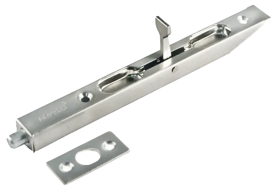 Торцевой шпингалет используется для врезки в дверь и фиксирования полотна в проеме.